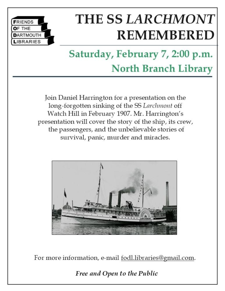 Mr. Harrington’s presentation will be held at Dartmouth North Branch Library, an accessible facility, which is located at 211 Cross Road, Dartmouth. For more information, please e-mail fodl.libraries@gmail.com.