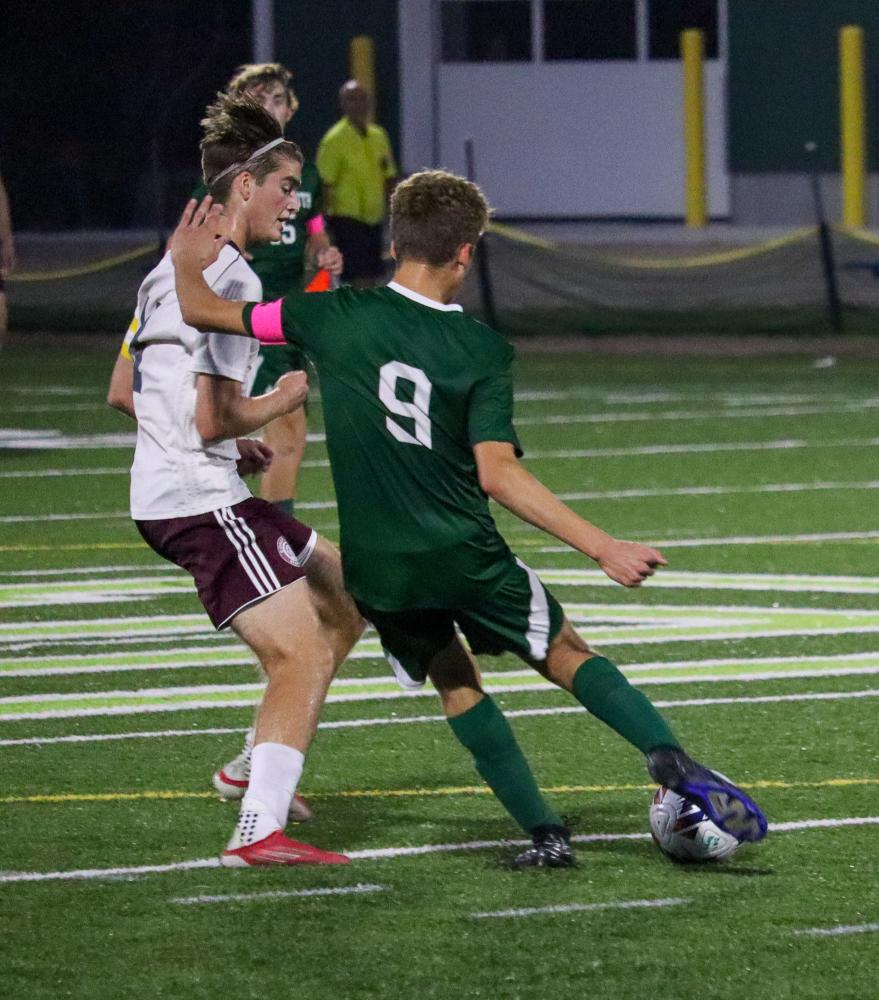 Owen Carter confidently dribbles while on the attack. Photos by Sean Flannelly