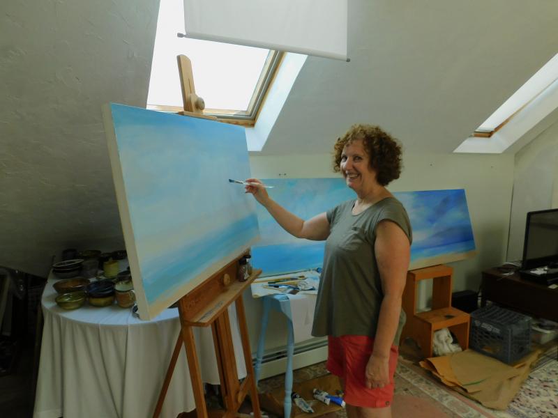 Jane Bregoli working on a recent seascape. BY CHLOE SHELFORD