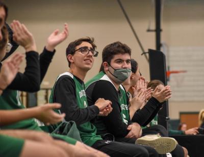 Decked out in their school colors and waving signs of players’ faces, students cheered on their unified basketball team who were playing a game against officers from the Dartmouth Police Department on Thursday, Nov. 14.