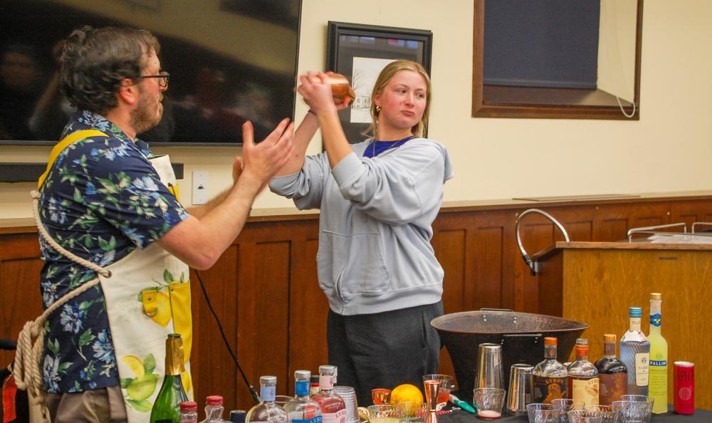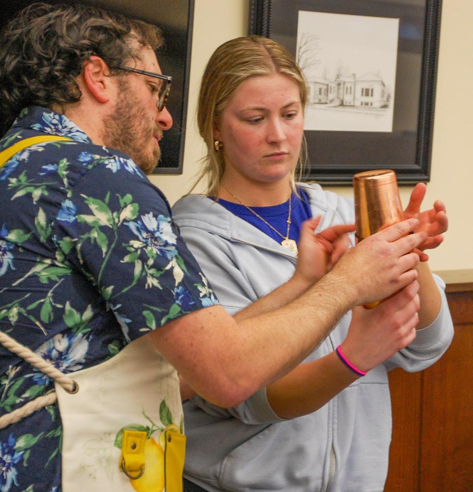 Another audience member got to try shaking a drink.