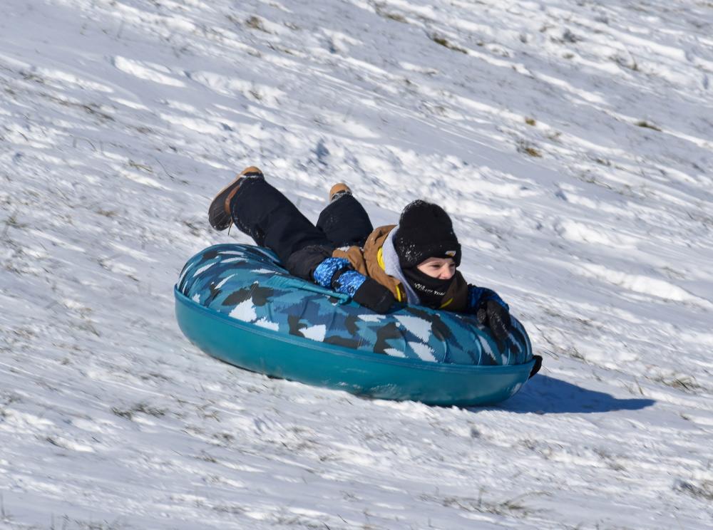 Sledding during the first significant snowfall of 2025. Photo by Leighah Beausoleil
