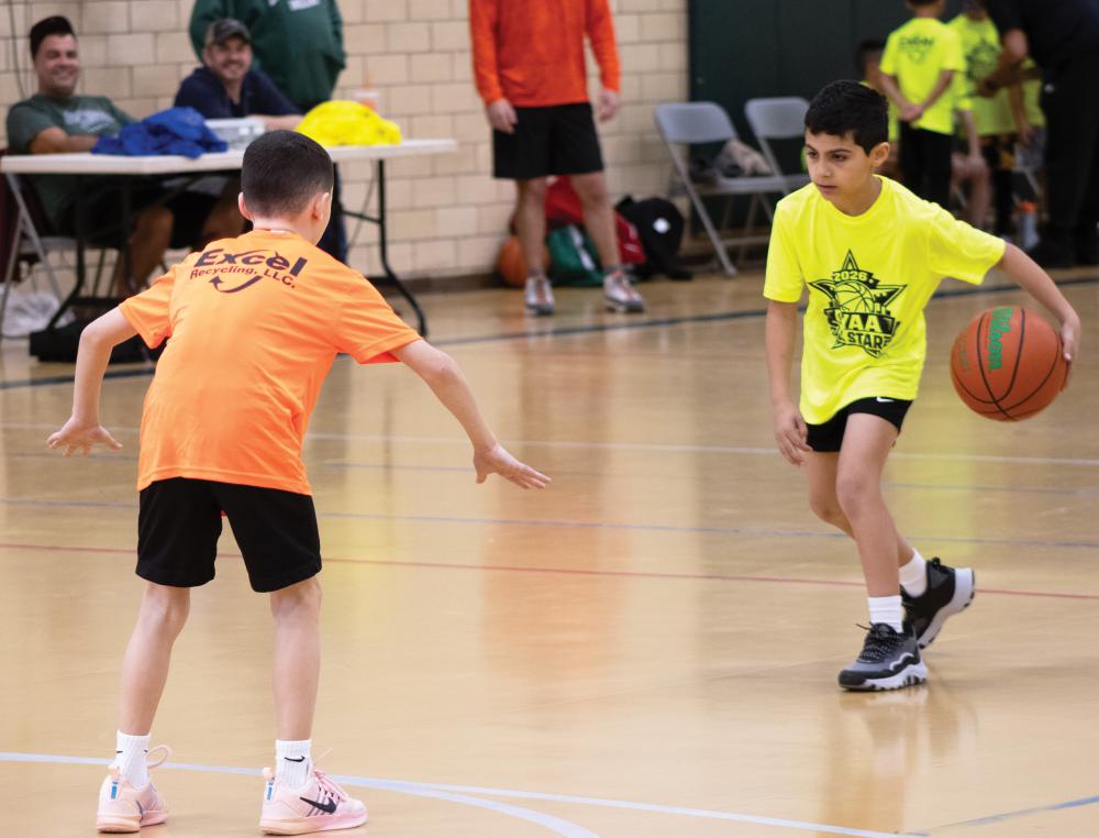 Bennett Mathes dribbles the ball while Kingston Xie goes on defense.For most of the day Sunday, the gym at Dartmouth Middle School was taken over by basketball players of all ages.