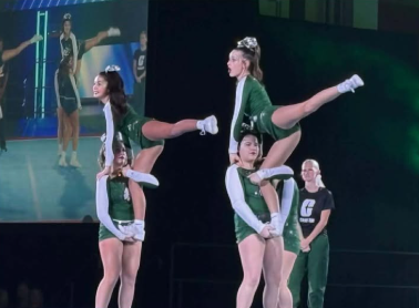 The team had to change their routine at the last minute though when one girl dropped out, and they had to change spots and fliers right before the competition.