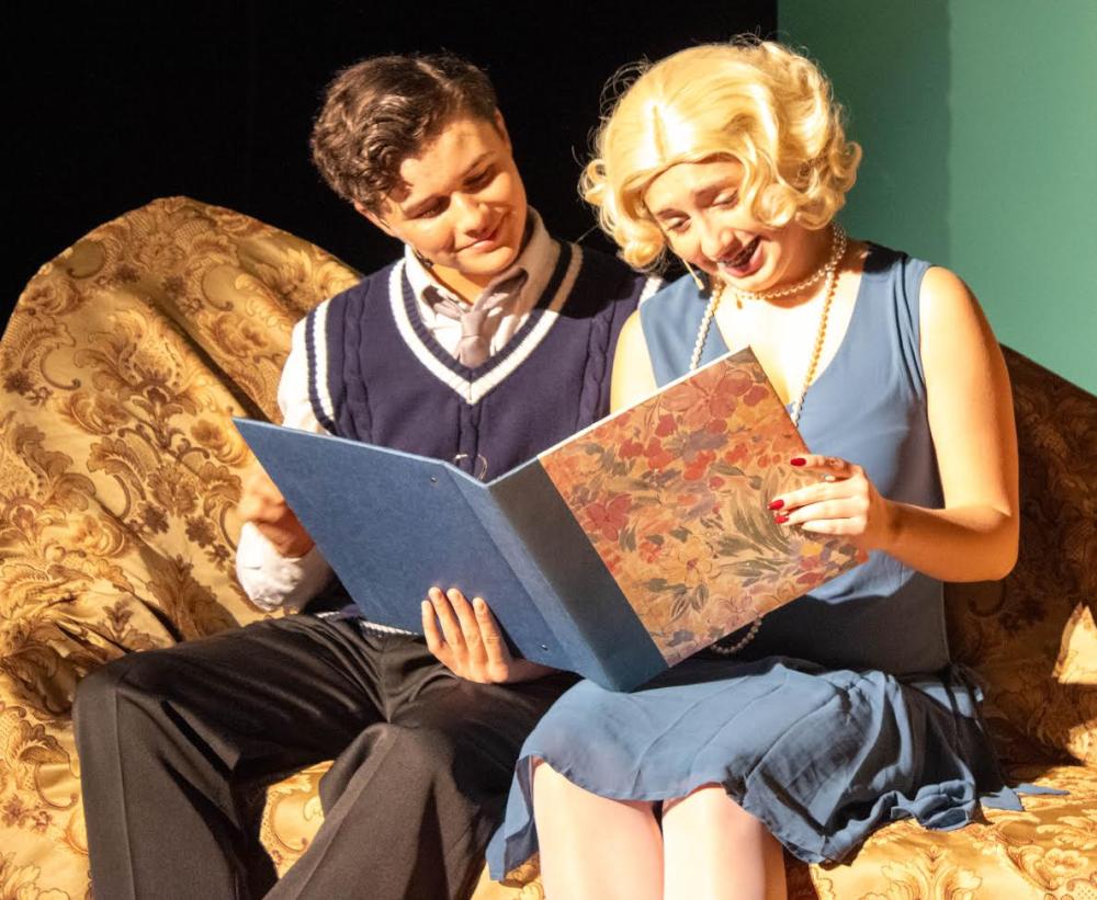 Jay Gatsby, played by Jack Nylin, and Daisy Buchanan, played by Saphira Botelho, look through a photo album filled with photos of Daisy. Photos by Abby Van Selous