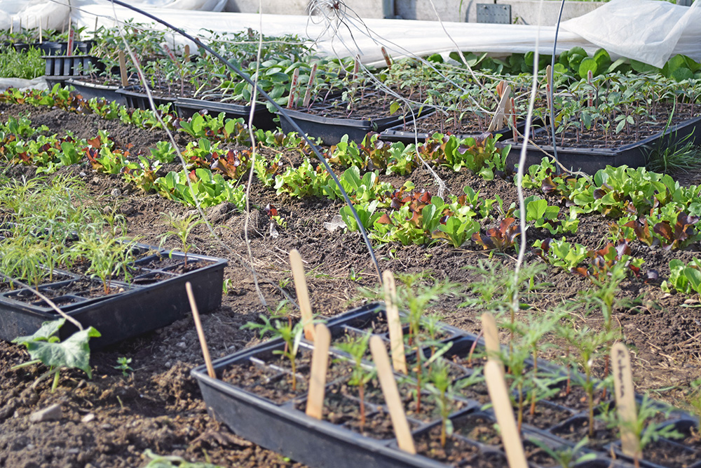 Some lettuce and other plants beginning to grow in the greenhouse.
