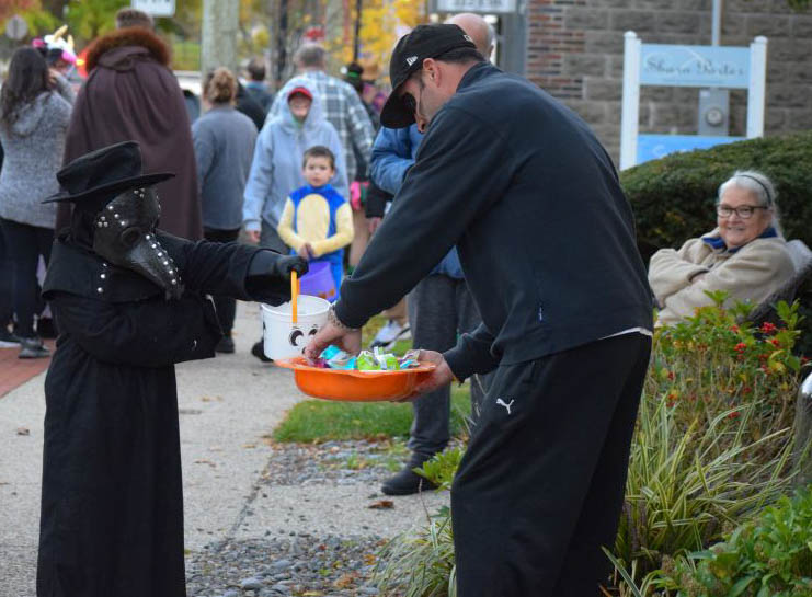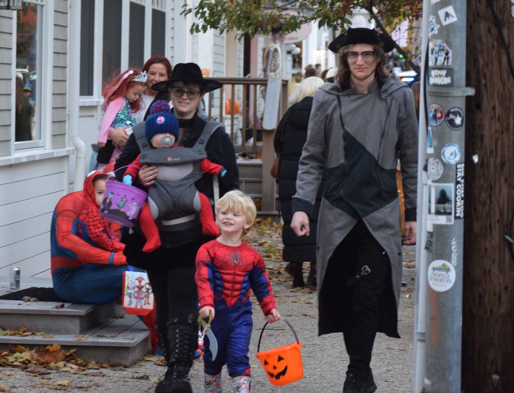 Padanaram Village had lots of parents, kids and dogs dressed up and parading down Elm Street. Kids walked up to shops, where employees handed out candy.