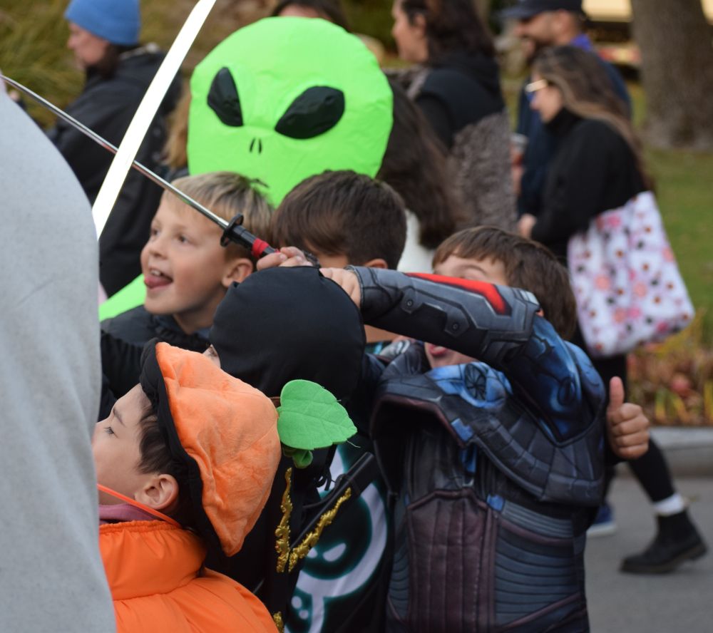 Families watch a magic show. Photo by Abby Van SelousHalloween was in the air, literally. A cool breeze blew yellow and red leaves off the trees onto trick-or-treaters participating in Halloween parades across Dartmouth on Friday, Oct. 31.