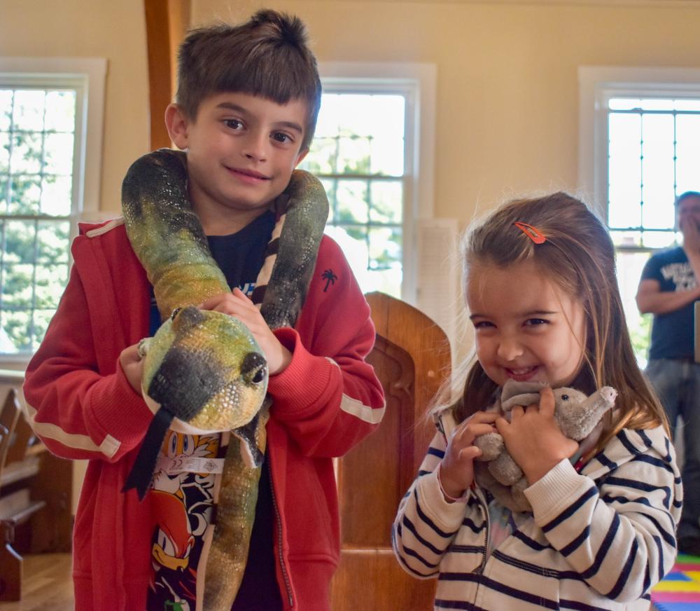 Finley Walecka, 6, and his sister Marli, 3, brought stuffed animals to be blessed.