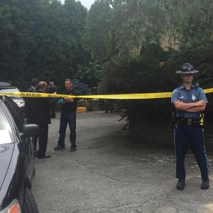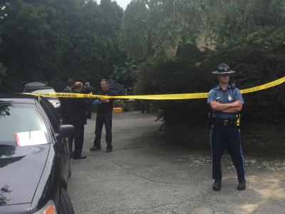 A State Police vehicle is parked outside the home. BY ANGIE HILSMAN