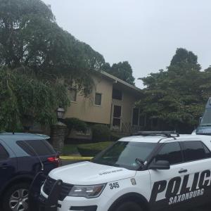 A Saxonburg police cruiser is seen outside the home. BY ANGIE HILSMAN
