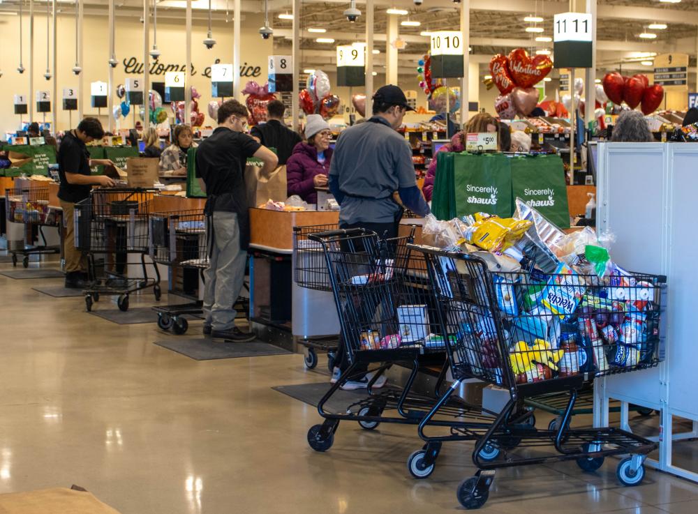 Baggers bag groceries at Shaw's on Saturday, Jan. 24 as residents prepare for the coming snow storm. Photos by Abby Van Selous
