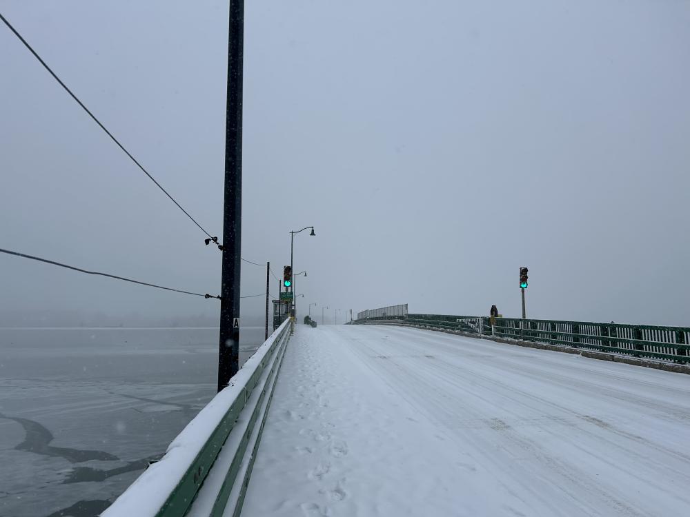 Padanaram Bridge covered in snow. Photo by Mari Huglin