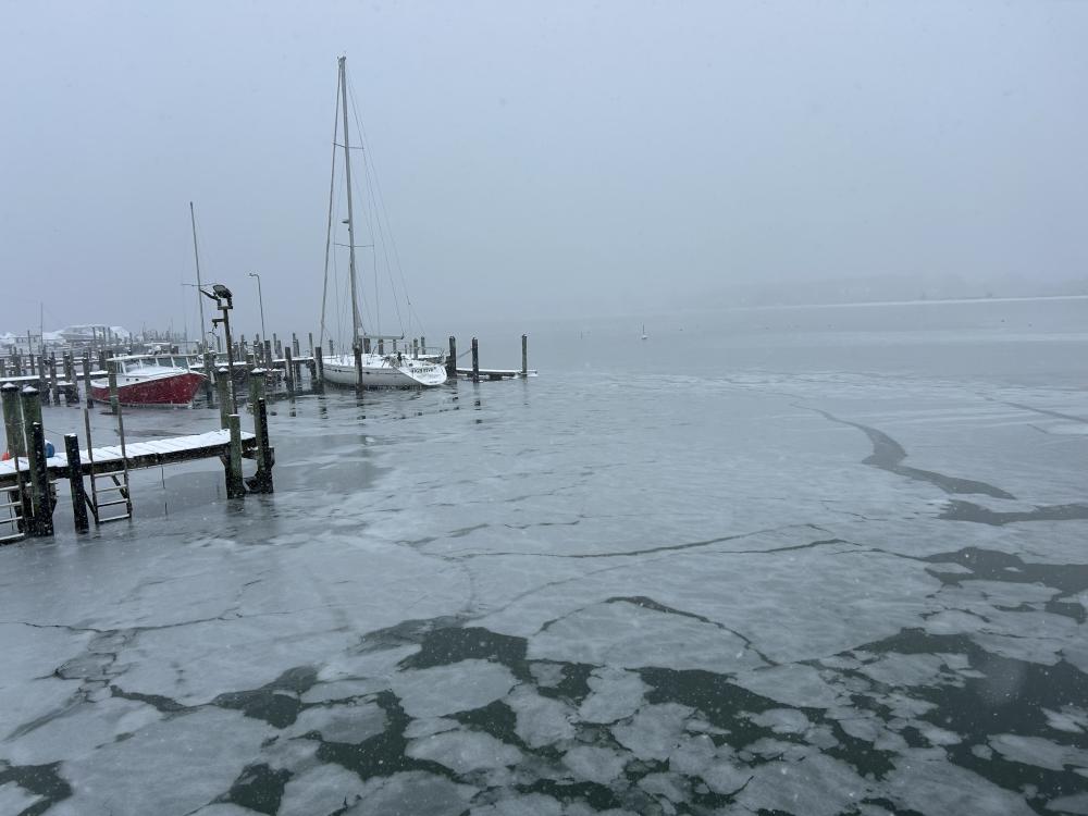 The frozen Padanaram Harbor. Photo by Mari Huglin