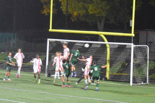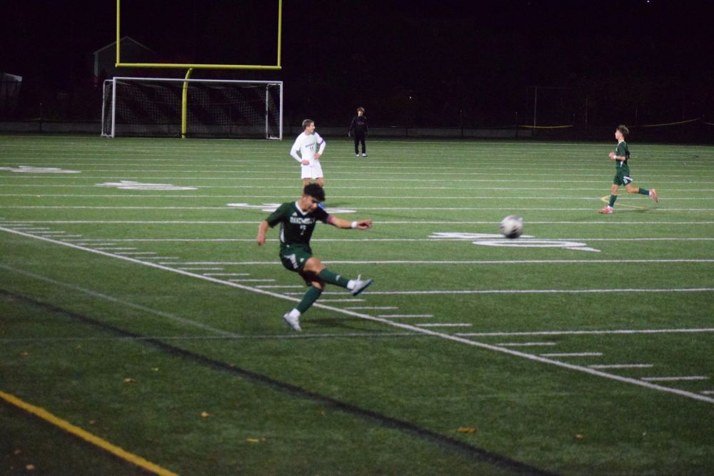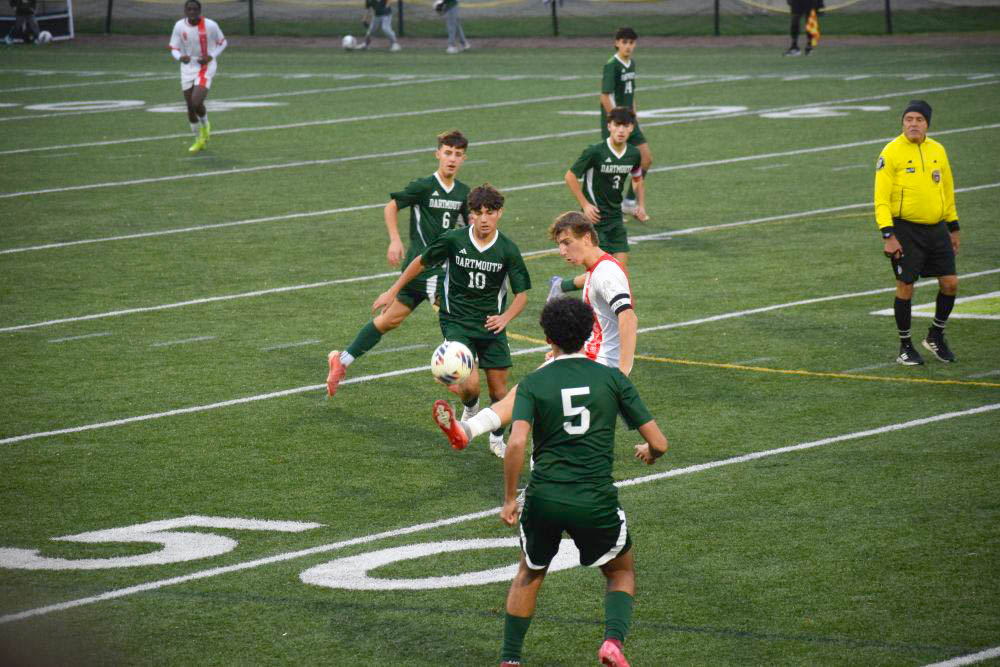 The crowd cheered in excitement at the Dartmouth High School boys soccer game in celebration of their seniors and their win against North Attleboro High School on Wednesday, Oct. 29.