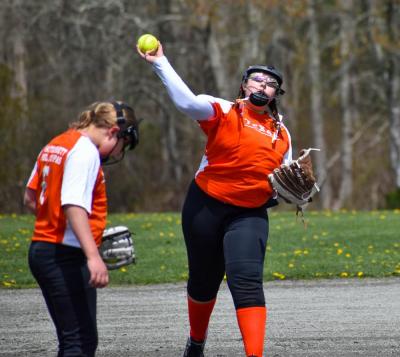 Emily Gauthier has her eye on the ball during one of the Dartmouth Girls Athletic League opening games Sunday, April 17. Photos by Leighah Beausoleil