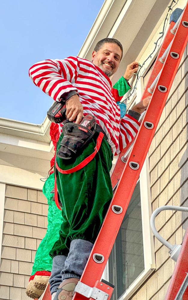 Elves take over Padanaram to hang lights. The elves got their new green wardrobe in 2024. Source: Tom Quann