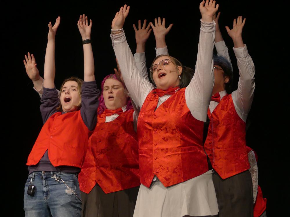Cooper Greil, as Ricky Potts, performs “Space Age Bachelor Man” during a dress rehearsal of “Ride the Cyclone” on Tuesday, April 2. Photos by Leighah Beausoleil