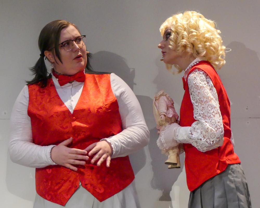 Aeris Knouse, as Constance Blackwood, acts creeped out by Alyssa Davidson, as Jane Doe, during “Ride the Cyclone.”