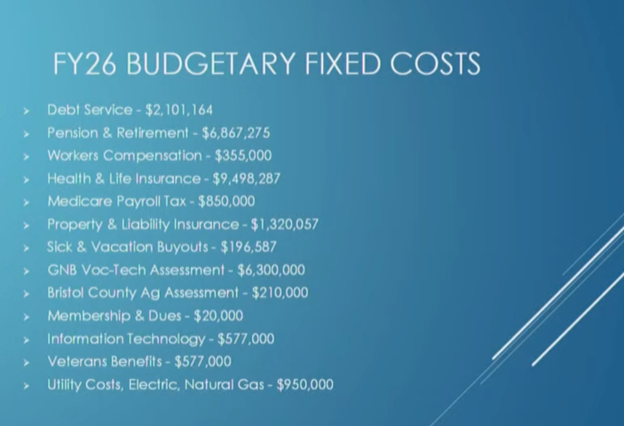 “There are costs in the budget that the town has no control over,” Carreiro said. “These are either mandates that come down from the state, pension assessments and so on and so forth.”