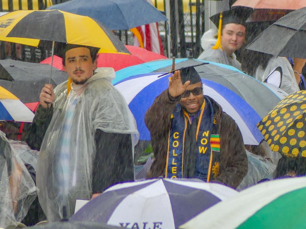 While the 2020 high school graduates might recall sitting 6 feet apart, a Zoom ceremony or having no prior commencement at all due to the Covid pandemic, the students and families seemingly didn’t let the weather dampen their spirits as they happily accepted the free rain ponchos as opposed to face masks.