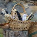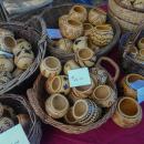 A vendor at the powwow sells hand-painted cups made out of gourds that she grew.