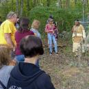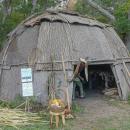 Guests explore the wetu that was built during the Wampanoag Experience Powwow in 2022.
