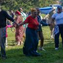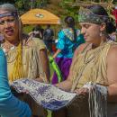 Attendees join hands to dance together.Smoke billowed across Wetu Field, rising from a tended fire slow-cooking two bluefish. It wafted through the air, bringing the scents of different types of wood to drummers, people dancing in their Native regalia, kids playing traditional games and vendors selling handcrafted artwork.