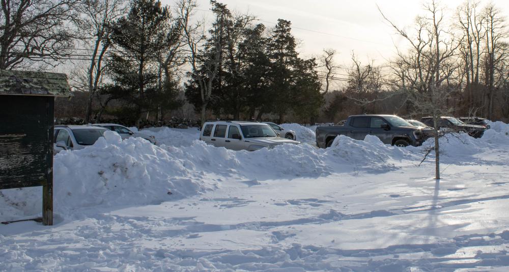 Cars fill the lot at Destruction Brook Woods.Dartmouth may have been spared from more snowfall Sunday, but the town still faced the bitter cold as temperatures never rose above 21 degrees and the windchill made it feel colder.