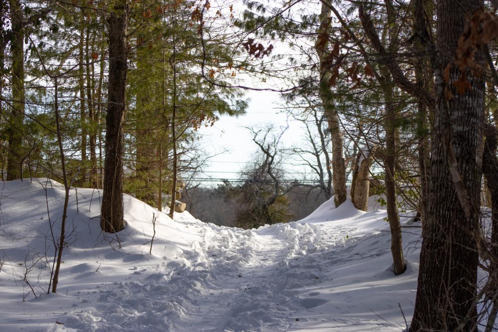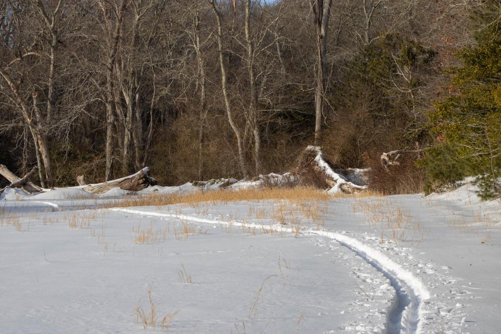 Tracks left behind by skiers and hikers lead the way out of the Destruction Brook Woods trails.