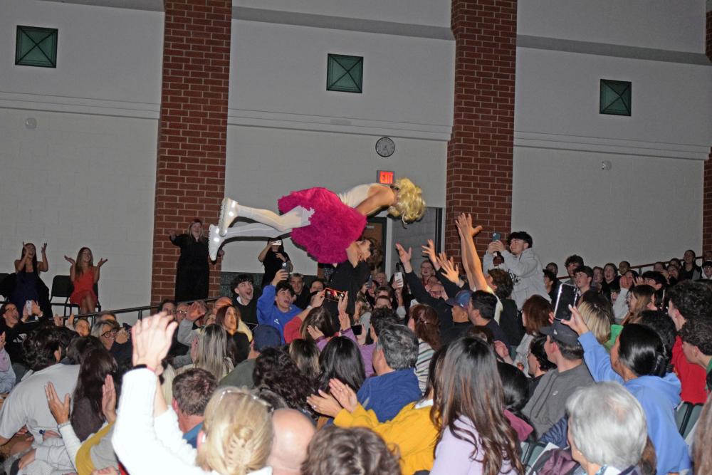 There was a comedy show by Tristan Almeida, who roasted the judges and made jokes about his own short stature. Two seniors did the dance from Dirty Dancing, one of whom was in drag. Plants in the audience came to lift “Baby” to mimic the iconic moment from the movie.