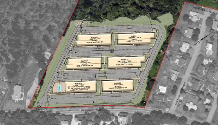The building closest to Hope Evangelical Church, at 88 Hathaway Road, will also include a clubhouse, pool, gym and other amenities.